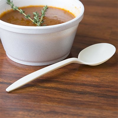 Белая одноразовая ложка 14 см БИО ЭКО из кукурузного крахмала