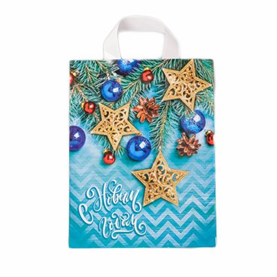 Пакет с петлевой ручкой 28х35 см (55 мкм) Новогодняя лазурь