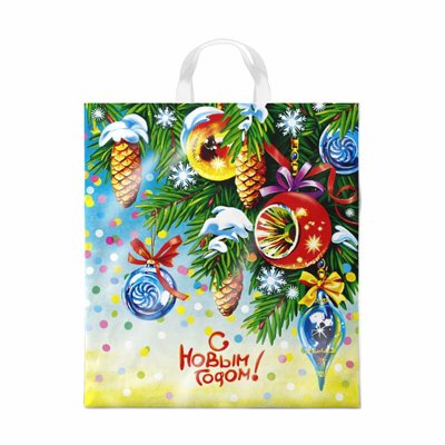 Новогодний пакет с петлевой ручкой 38х42+6 см (40 мкм) ПНД Пробил час