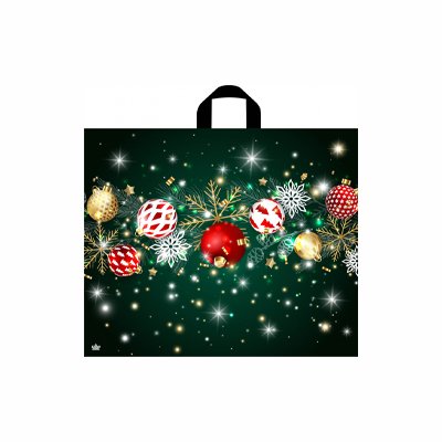 Пакет с петлевой ручкой 60х50+11см (60 мкм) ПЭ Новогоднее мерцание