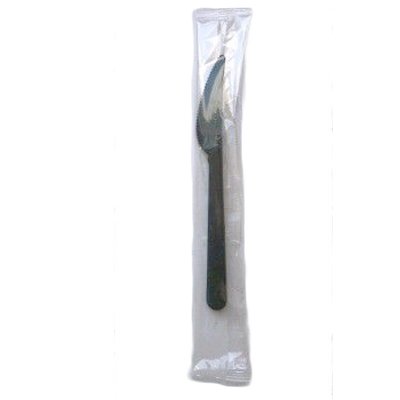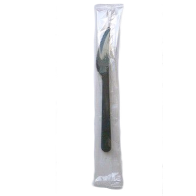 Нож одноразовый столовый 18 см черный в индивидуальной упаковке