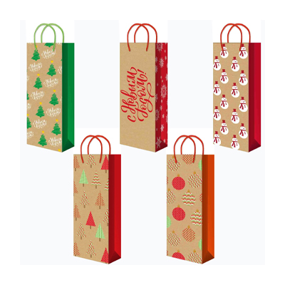 Ламинированные подарочные новогодние бумажные пакеты с ручками
