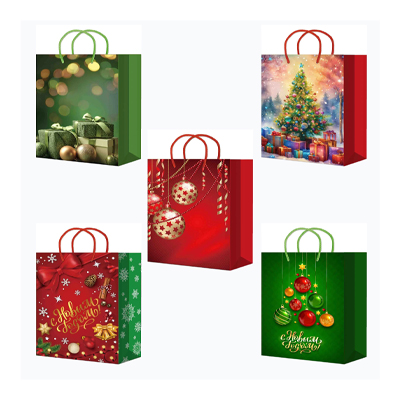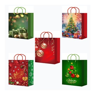 Ламинированные новогодние подарочные бумажные пакеты с ручками