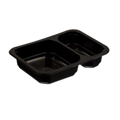 Контейнер (Лоток) 2х секционный прямоугольный ПП Фреш под запайку 600 мл, Черный