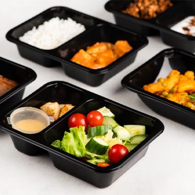 Одноразовые 2х секционные контейнеры ПП под запайку 600 мл