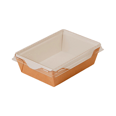 Одноразовый бумажный салатник 500 мл Крафт/Белый с крышкой