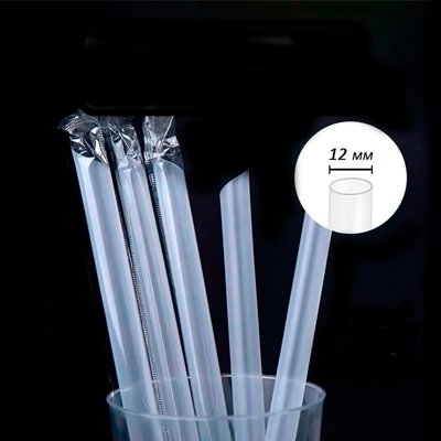Трубочки прямые прозрачные со скошенным углом 240х12 мм в индивидуальной п/п упаковке