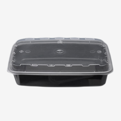 Одноразовый черный прямоугольный контейнер с прозрачной крышкой 830 мл