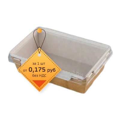 Одноразовый бумажный ланч-бокс 400 мл с пластиковой крышкой